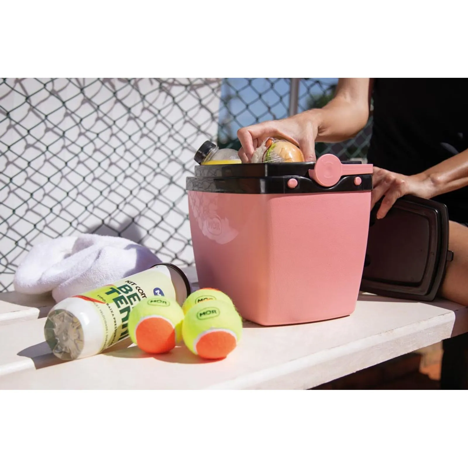 Outro ponto importante é a capacidade interna de 6 litros, que permite armazenar até 8 latinhas de 350 ml, 6 unidades de 473 ml ou 3 garrafas de 600 ml. Dessa maneira, ela se mostra perfeita para acompanhar dias de praia, camping ou trajetos mais longos de carro.